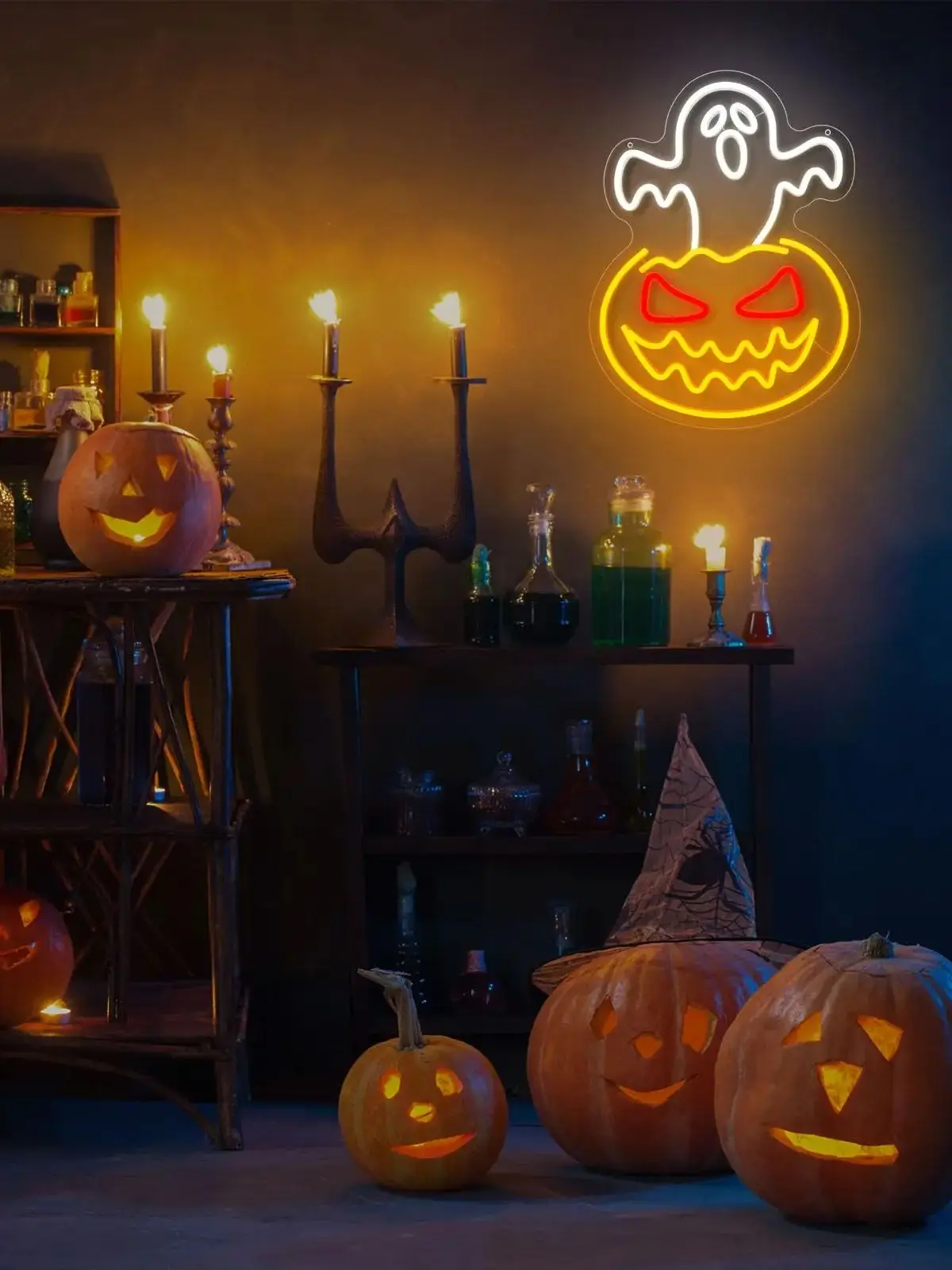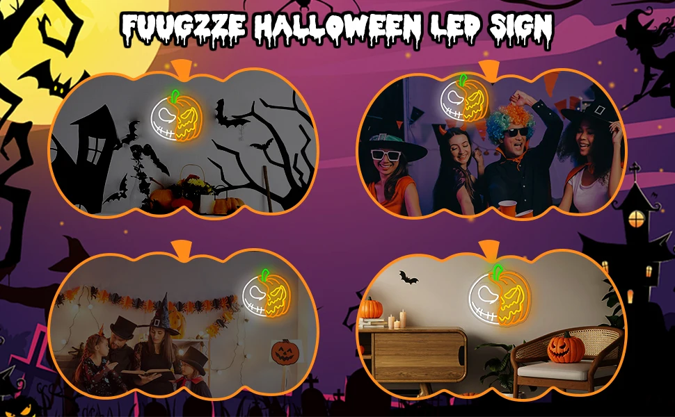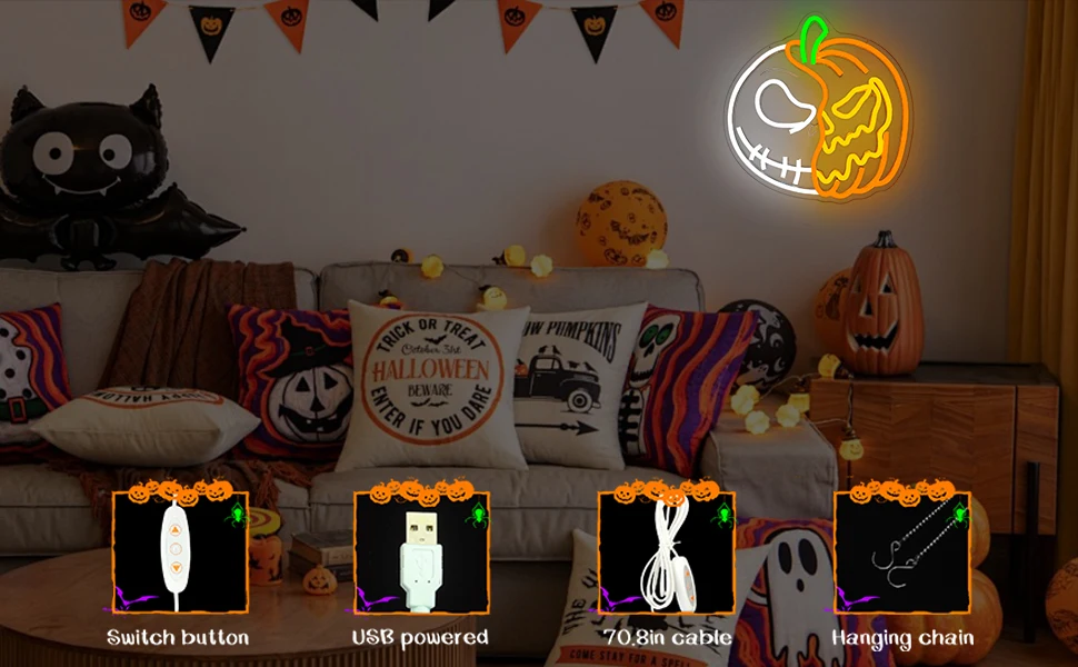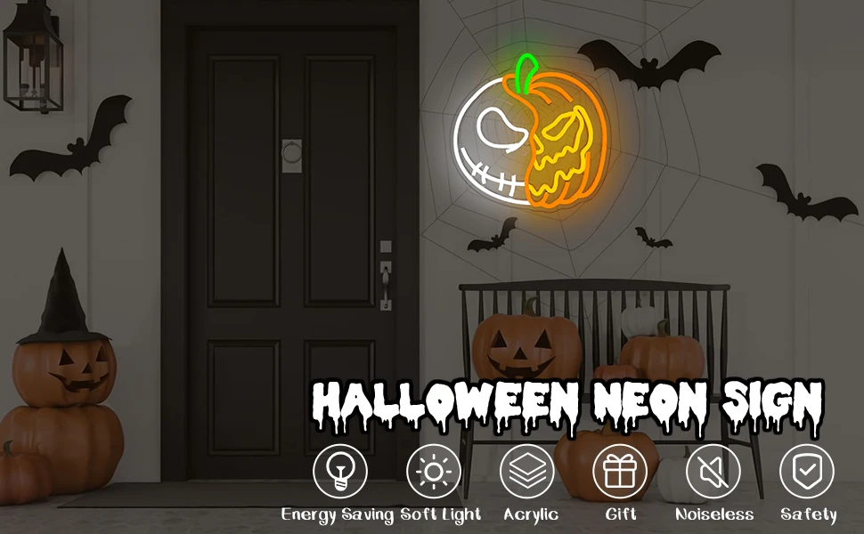 Halloween Neon Signs for Wall Decor Led Pumpkin Lights Sign Skull Neon Sign USB Light Up Pumpkin Signs Dimmable Skull Led Sign for Bedroom Wall Halloween Decor Christmas Gift