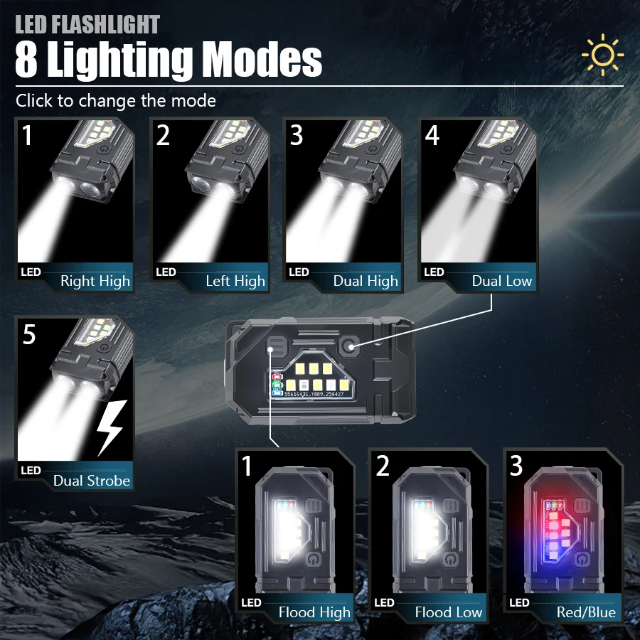Lightweight and compact: The rear clip flash is sufficient to be used as a key ring light, a headlight clip on a hat, and a signal tool on a backpack. When you go hiking, take a night walk, camp or fish.