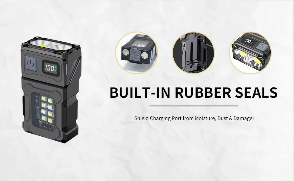 Adjustable head :90° adjustable rotating head flashlight with a rear clip, providing flexible illumination angles.