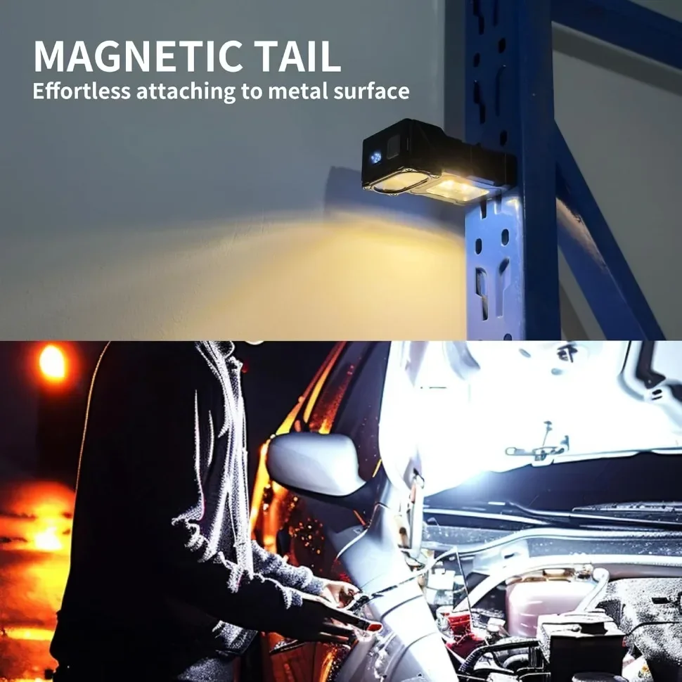 Dual light source: The mini portable pocket flashlight has 7 lighting modes, with a focused main light and a wider side light.