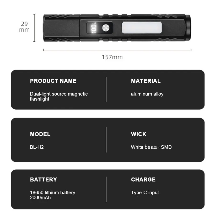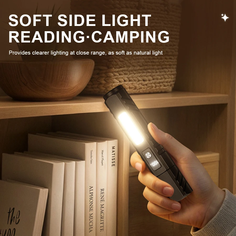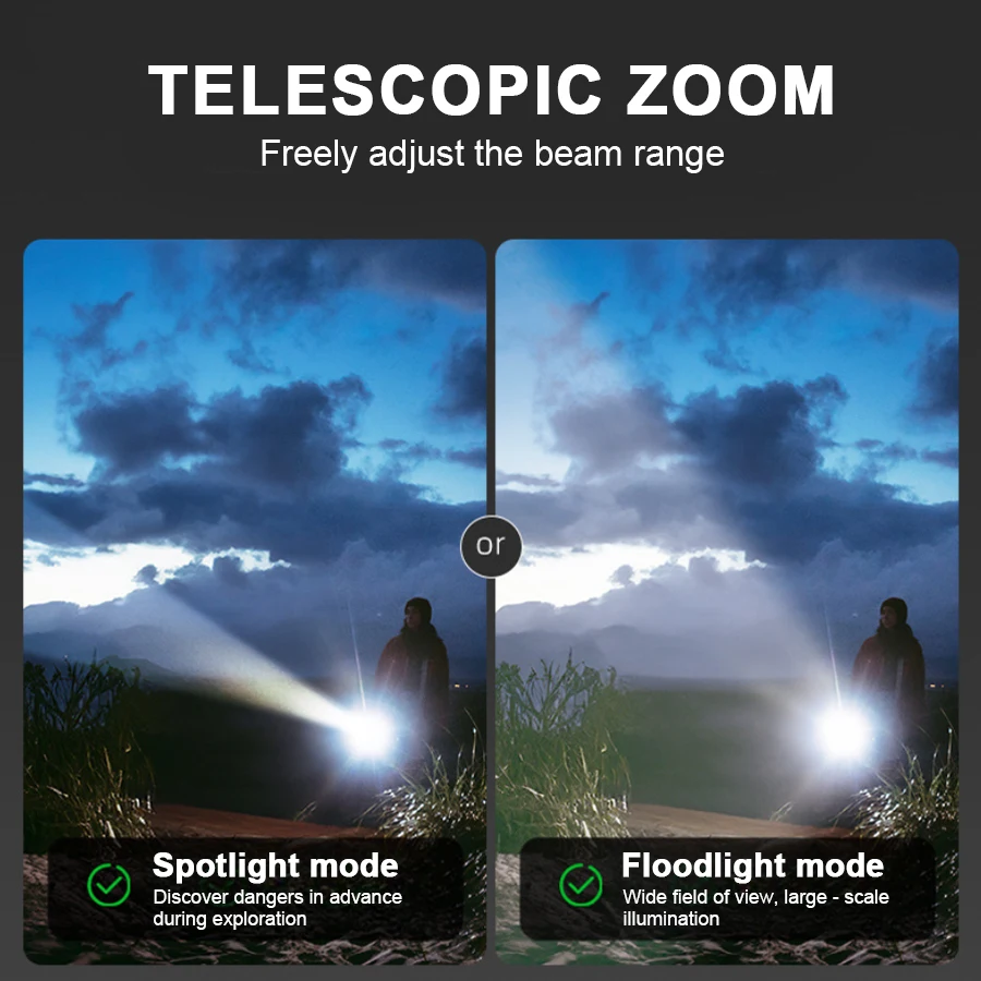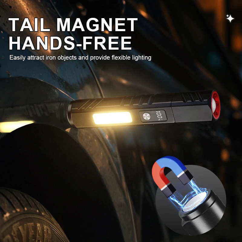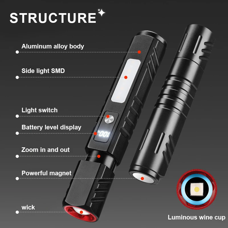 Outdoor Zoom LED Flashlight Portable USB Rechargeable Torch Built-in 18650 Lithium Battery COB Magnetic WORK Light for Camping
