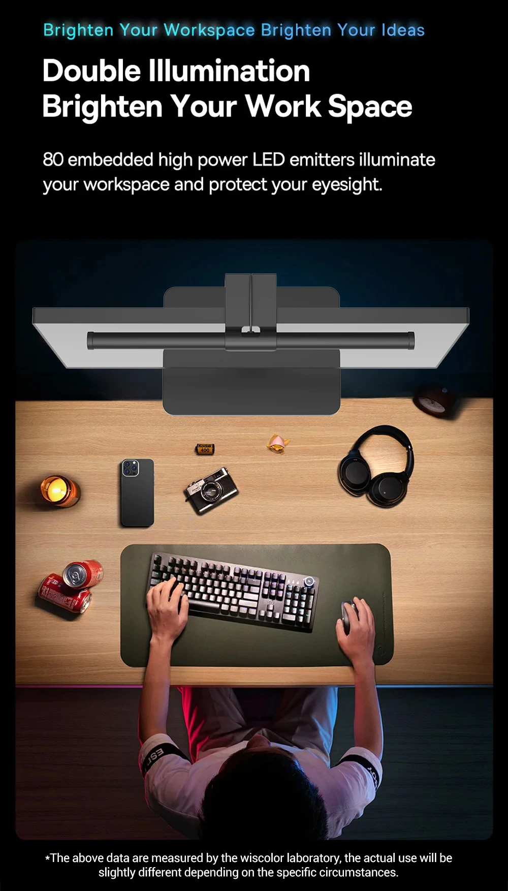 The innovative hanging design saves desk space while positioning lights perfectly above your screen. The sturdy clamp fits most monitors without causing shadow interference.